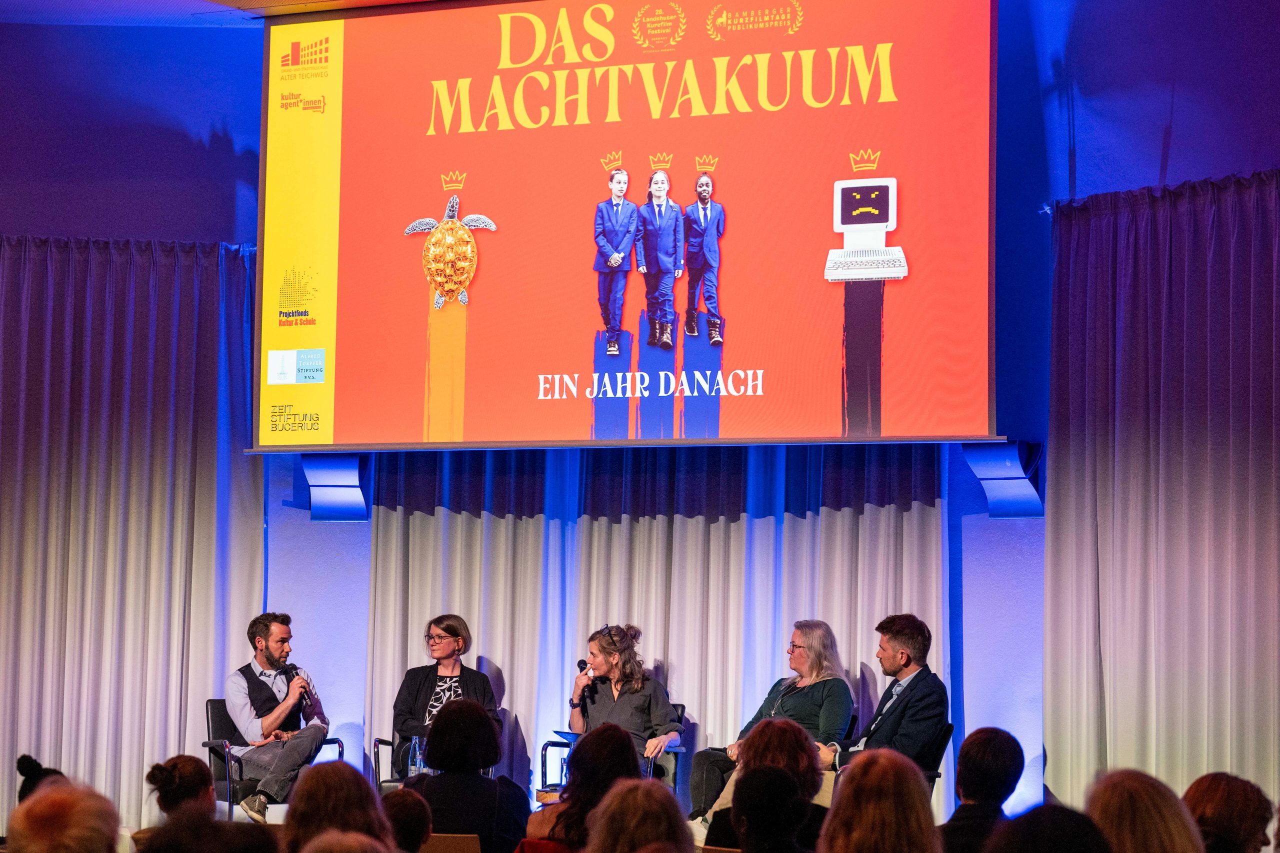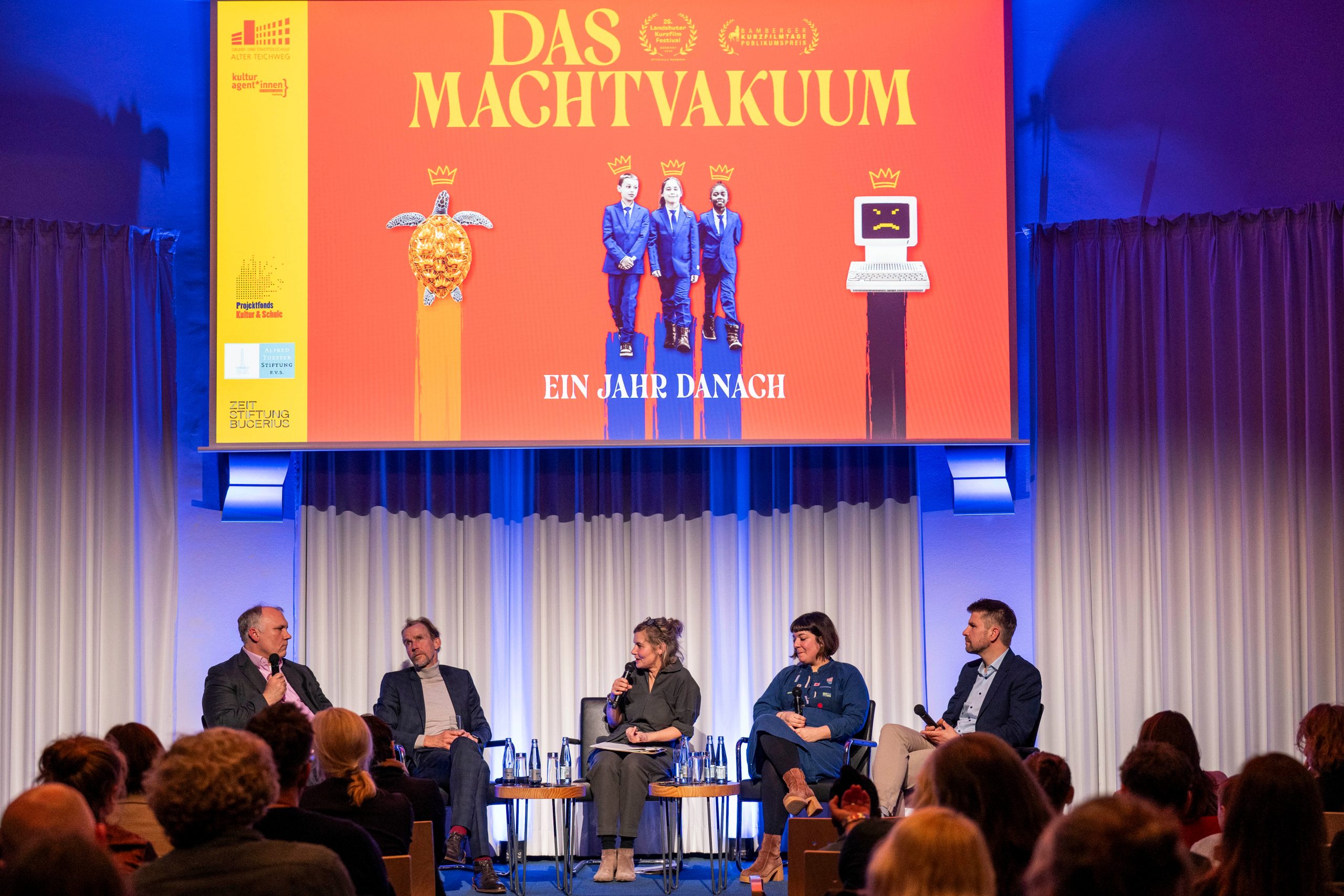 Genau ein Jahr nach dem Ende eines der herausragendsten Kunst- und Kulturprojekte, die es jemals am ATw gegeben hat, gab es nun die Uraufführung der Film-Dokumentation „Das Machtvakuum“ in der Bucerius Law School. Das Projekt ist derart vielschichtig und hatte so viele unterschiedliche Emotionen hervorgerufen, dass man sich erstmal ein Jahr sortieren musste, um im besonderen Rahmen mit 150 hochkarätigen Gästen aus Kultur, Politik, Wirtschaft, Bildung, Behörde, Stiftungen und der Schulgemeinschaft gemeinsam Erkenntnisse daraus zu ziehen.